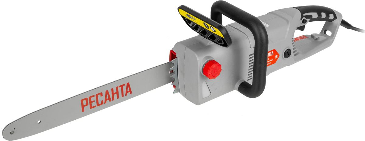 Небольшой шум во время работы цепной пилы РЕСАНТА ЭП-2216 не доставит неудобств присутствующим людям. Легко включается нажатием кнопки пуск. При выключении цепь моментально останавливается, хотя двигатель еще некоторое время работает. Натяжение цепи производится самостоятельно при помощи специального ключа, входящего в комплект.