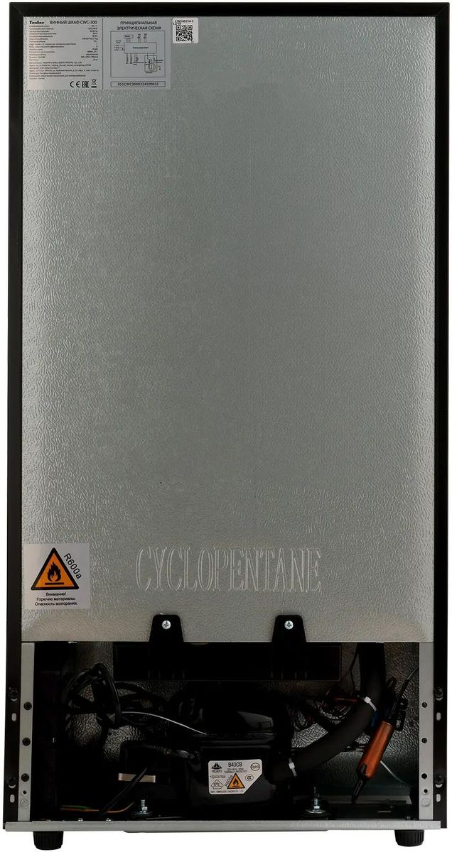 Винный шкаф однокамерный TESLER CWC-300 вместимость: 27 бутылок, черный/серебристый