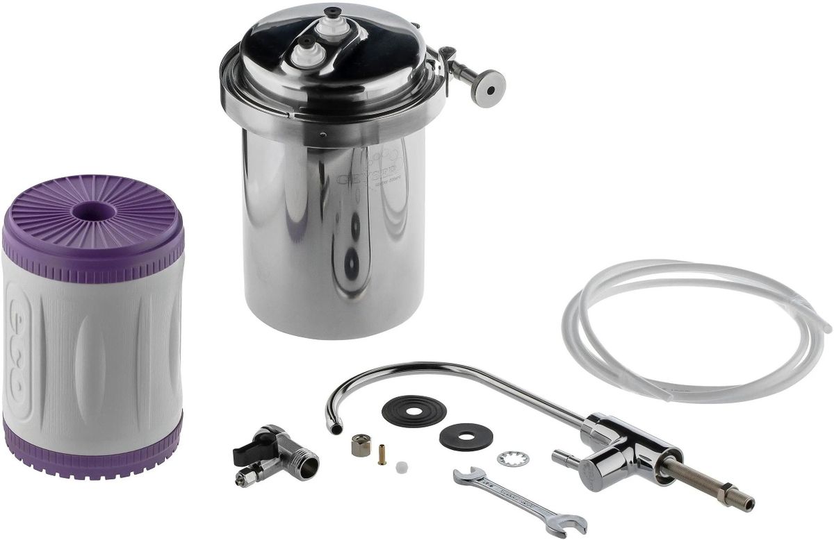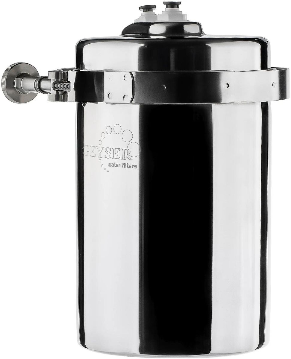 Водоочиститель ГЕЙЗЕР Эко для жесткой воды выполнен в прочном корпусе из нержавеющей стали. Материал не вступает в реакции с химически агрессивными веществами. Его подключают к водопроводу, размещая под раковиной. В ходе фильтрации, которая проводится со скоростью 1.5 л/мин при рабочем давлении, не превышающем 7 атм и температуре воды от 4 до 40°С, задерживаются нерастворимые в воде частицы, хлор, соли жесткости, органические примеси.