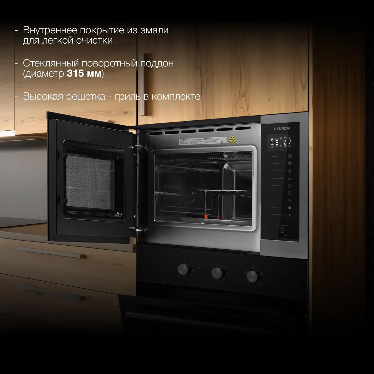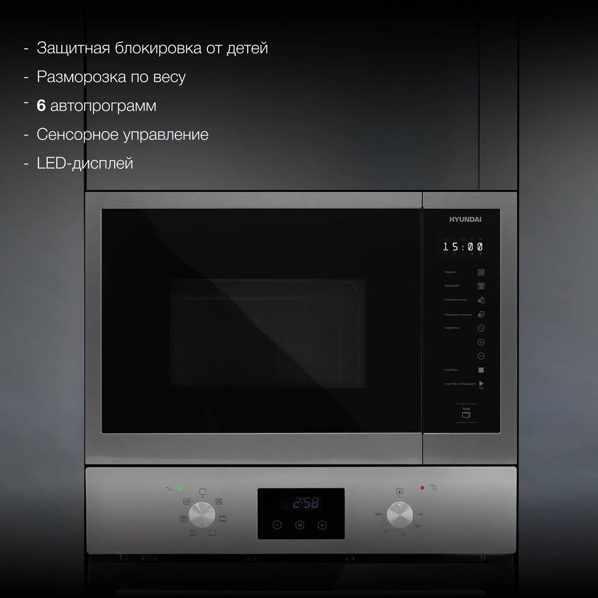 Встраиваемая микроволновая печь Hyundai HBW 2560 DX, 25л, 900Вт, черная сталь