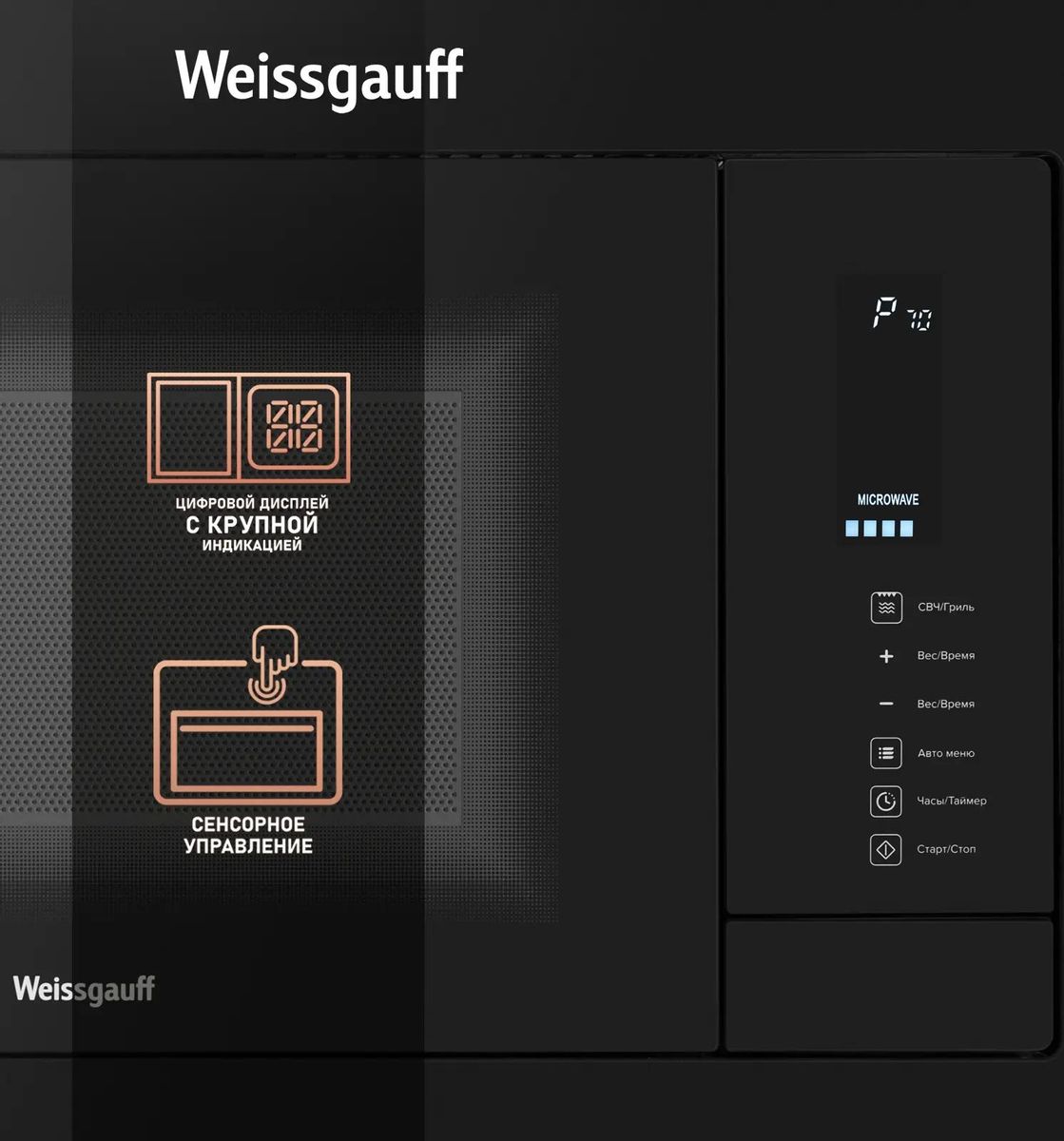 Встраиваемая микроволновая печь WEISSGAUFF HMT-225 Touch Grill, 25л, 900Вт, черный [433075]