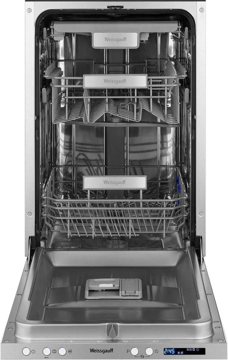 Встраиваемая посудомоечная машина WEISSGAUFF BDW 4533 D Wi-Fi, узкая, ширина 44.8см, полновстраиваемая, загрузка 10 комплектов